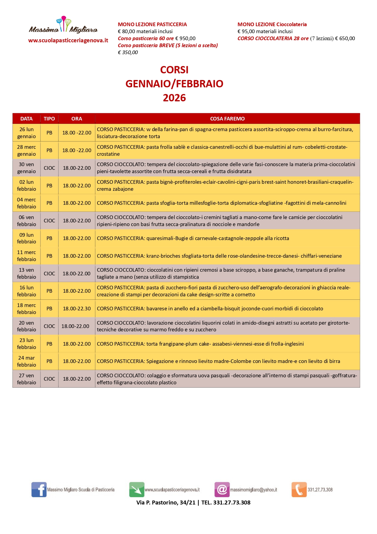 È la prima scuola di PASTICCERIA PROFESSIONALE a GENOVA dedicata a professionisti e non solo.